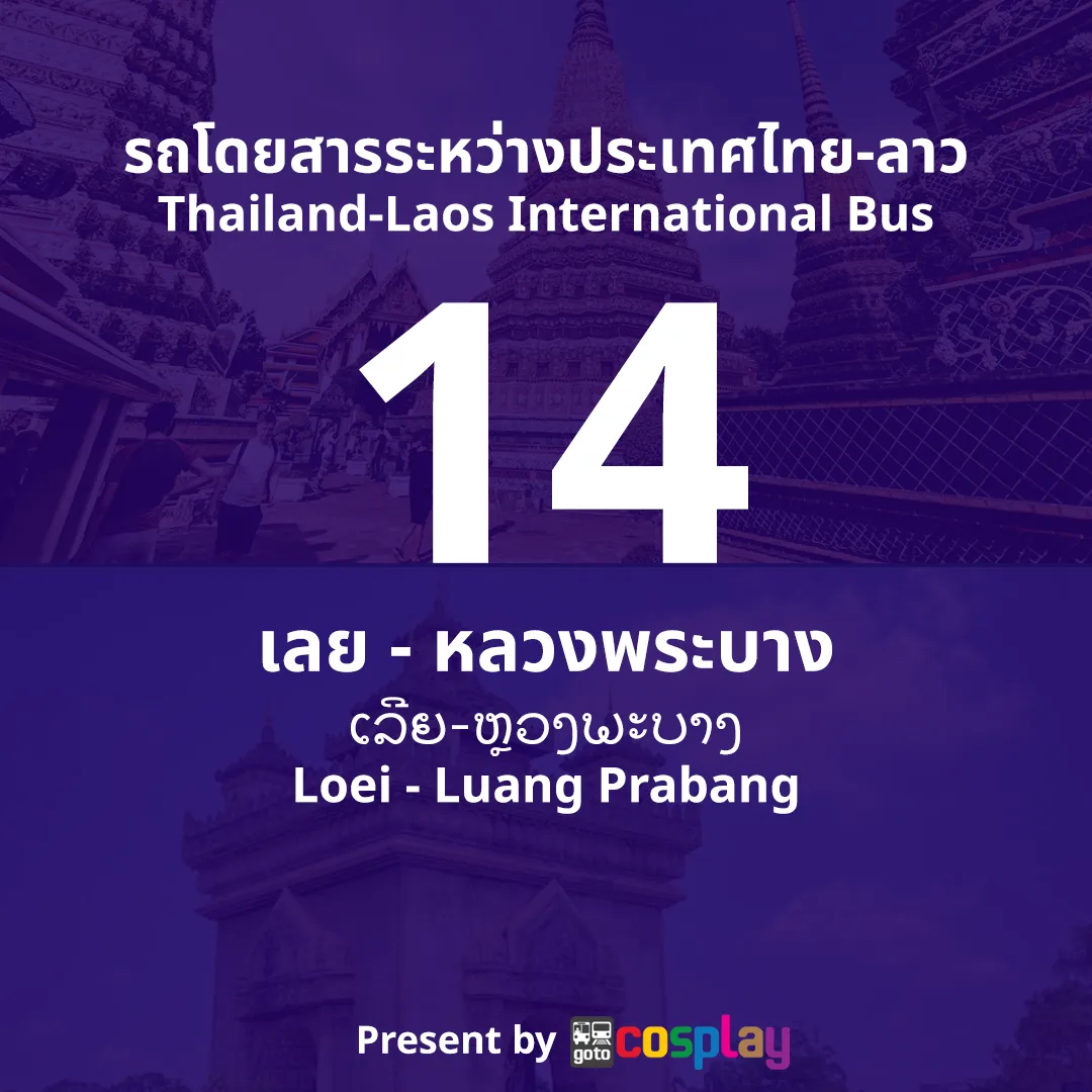 • หมวดเส้นทาง : รถโดยสารระหว่างประเทศ • สายที่ : 14 • ช่วงเส้นทาง : เลย – หลวงพระบาง • ผู้ประกอบการเดินรถ (เดินรถทั้ง 2 ประเทศ) บริษัท ขนส่ง จำกัด (บขส.) บริษัท นาหลวงขนส่งผ่านแดน และท่องเที่ยว จำกัด (สปป.ลาว)