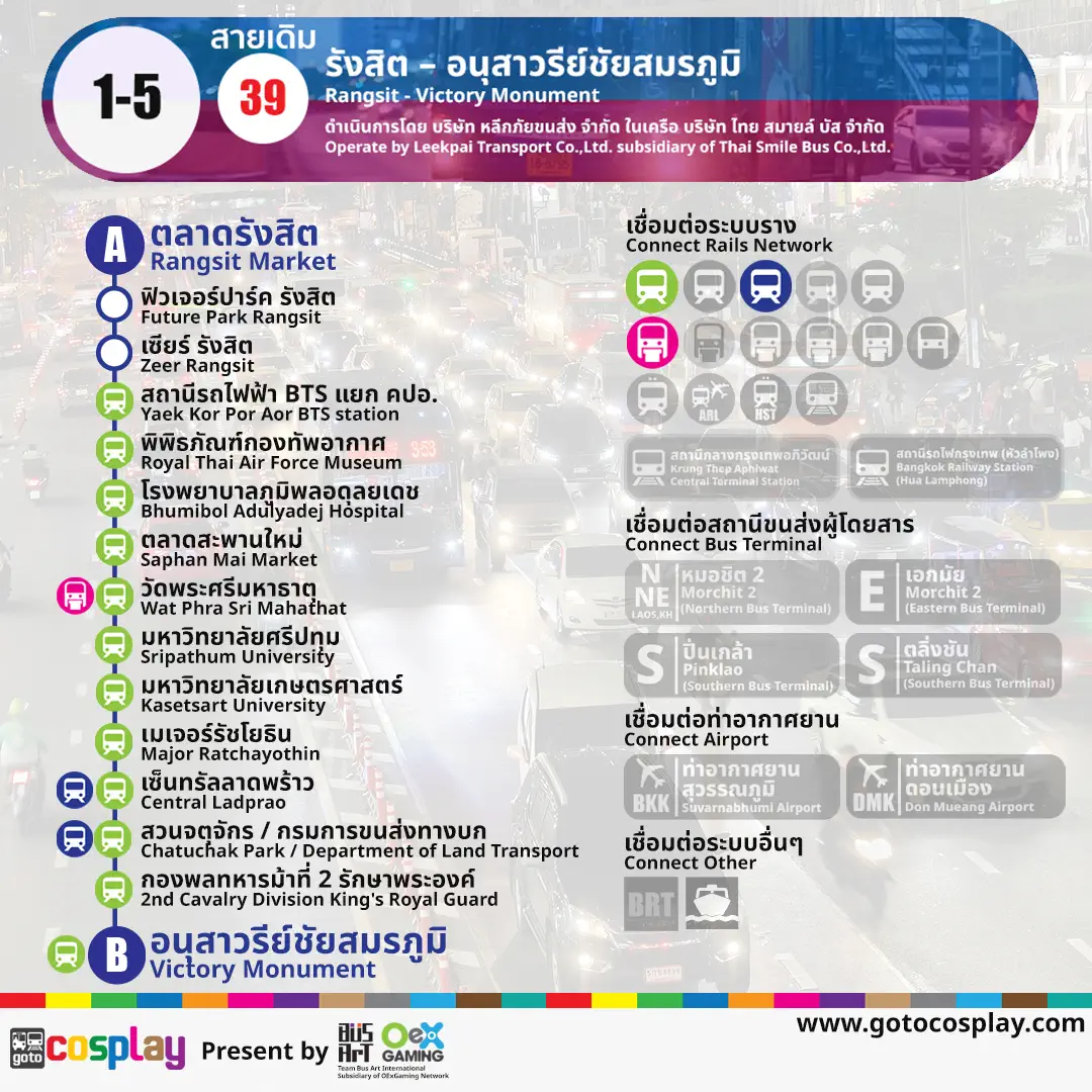 ปัจจุบันเส้นทางสายปฎิรูป 1-5 ยังใช้แนวเส้นทางเดิมของสาย 39 ช่วง รังสิต – อนุสาวรีย์ชัยสมรภูมิ และได้มีการส่งต่อผู้ประกอบการตามนโยบาย 1 เส้นทาง 1 ผู้ประกอบการ มาเป็น บริษัท หลีกภัยขนส่ง จำกัด ภายหลังได้มีการลงทุนจากบริษัทหลักทรัพย์ บียอนด์ จำกัด (มหาชน) หรือ BYD มาอยู่ภายใต้เครือบริษัท ไทย สมายล์ บัส จำกัด |