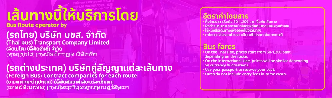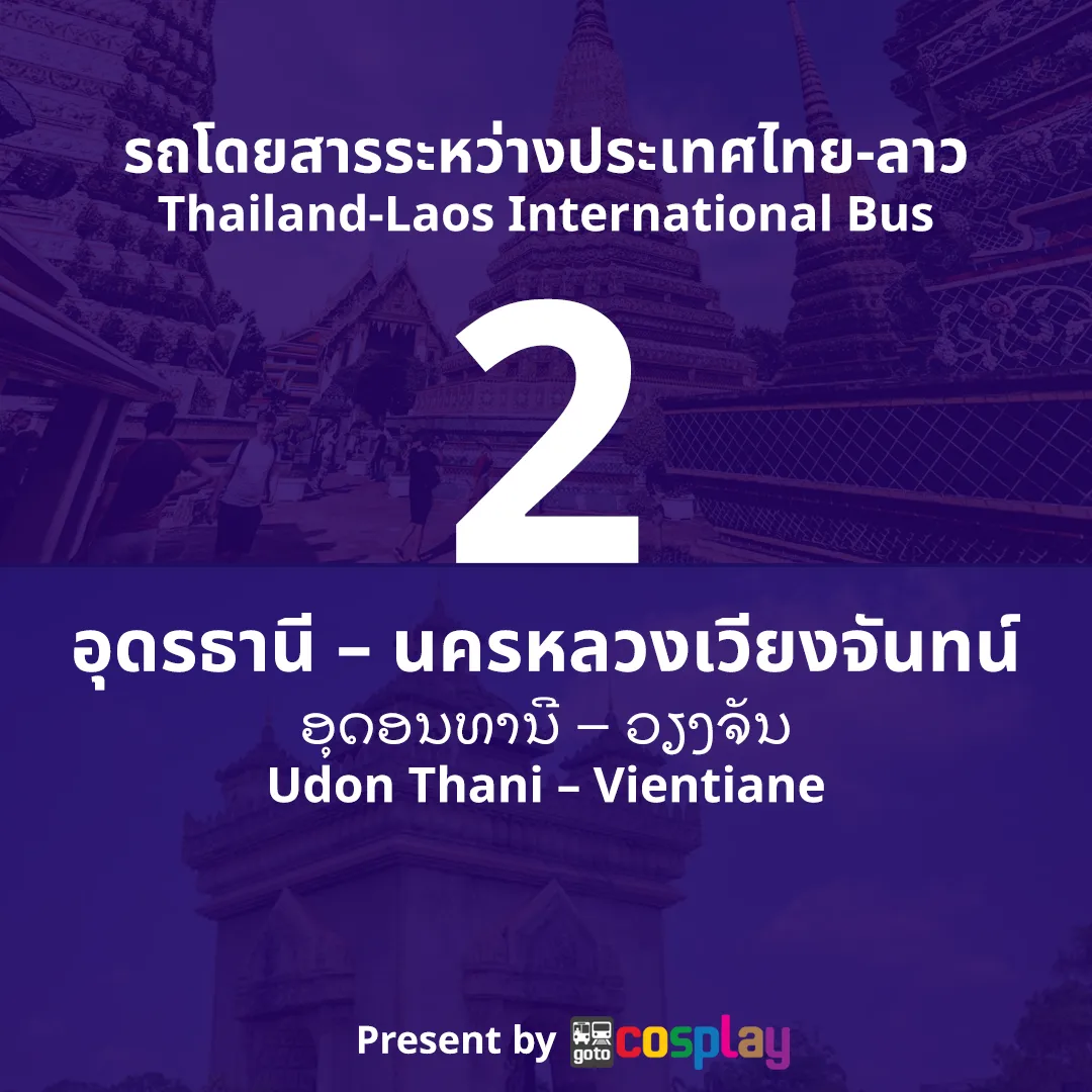 • หมวดเส้นทาง : รถโดยสารระหว่างประเทศ • สายที่ : 2 • ช่วงเส้นทาง : อุดรธานี – นครหลวงเวียงจันทน์ • ผู้ประกอบการเดินรถ (เดินรถทั้ง 2 ประเทศ) บริษัท ขนส่ง จำกัด (บขส.) รัฐวิสาหกิจรถเมล์นครหลวงเวียงจันทน์